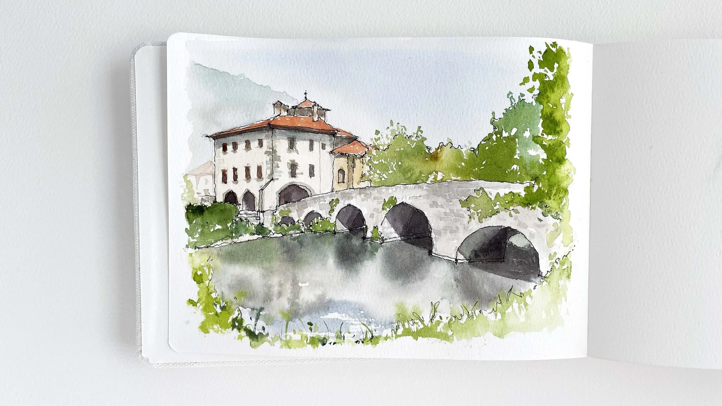 Below is a process video of the challenge painting for September 2021 which includes elements of perspective. You can grab the reference photo from the YouTube video and try this yourself!
