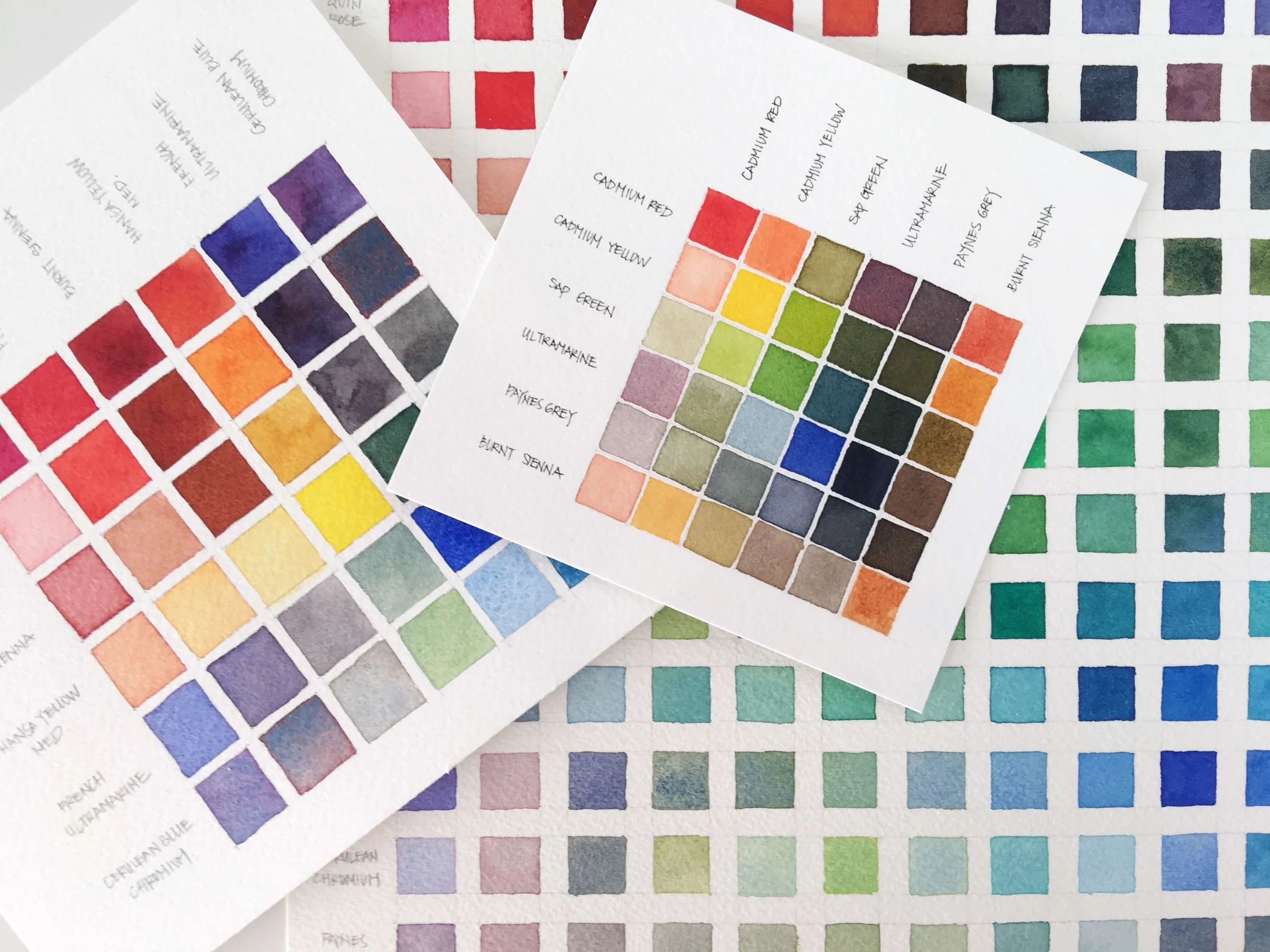 There’s a lot of information out there on how to create watercolor charts - the idea behind them all being similar: get to know your paints and learn how colors mix.