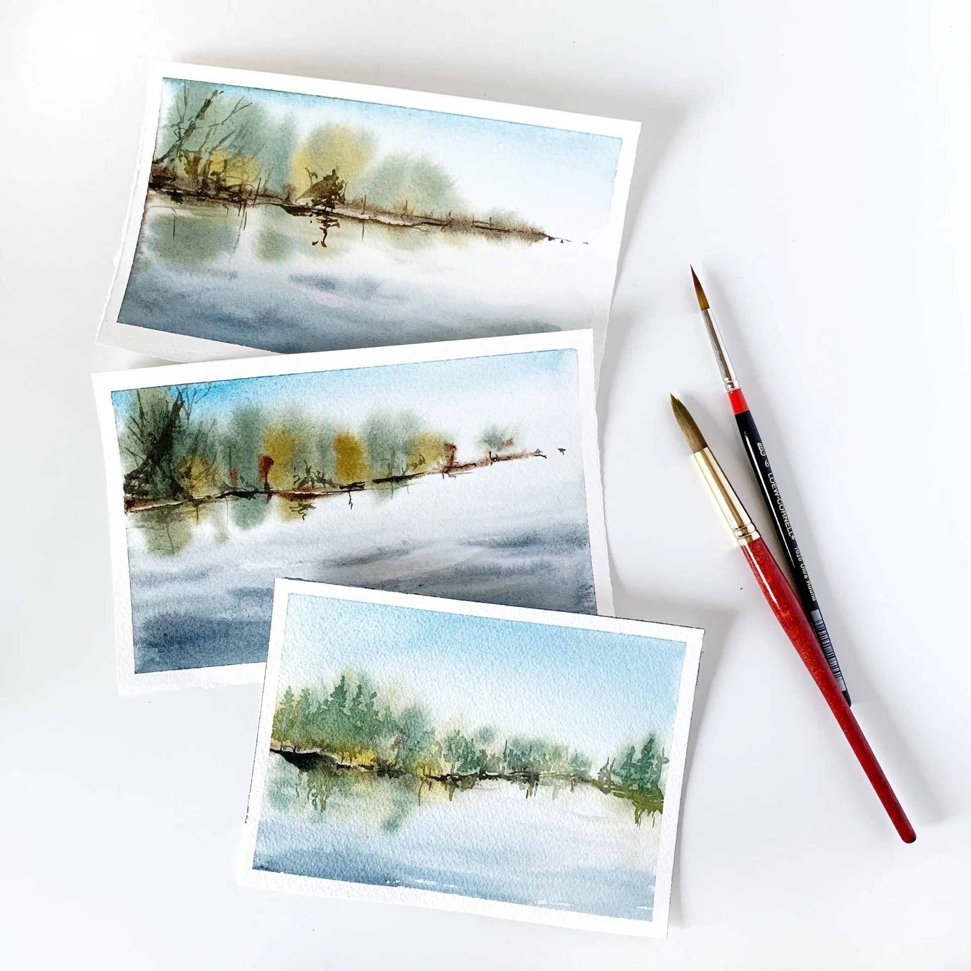 In today’s post, I’m sharing my approach to painting gradient watercolor skies. The first approach is my simple method and the second approach is a little more complex. Gradient skies serves as useful backgrounds of landscapes and are a great way to practice how to paint color transitions.