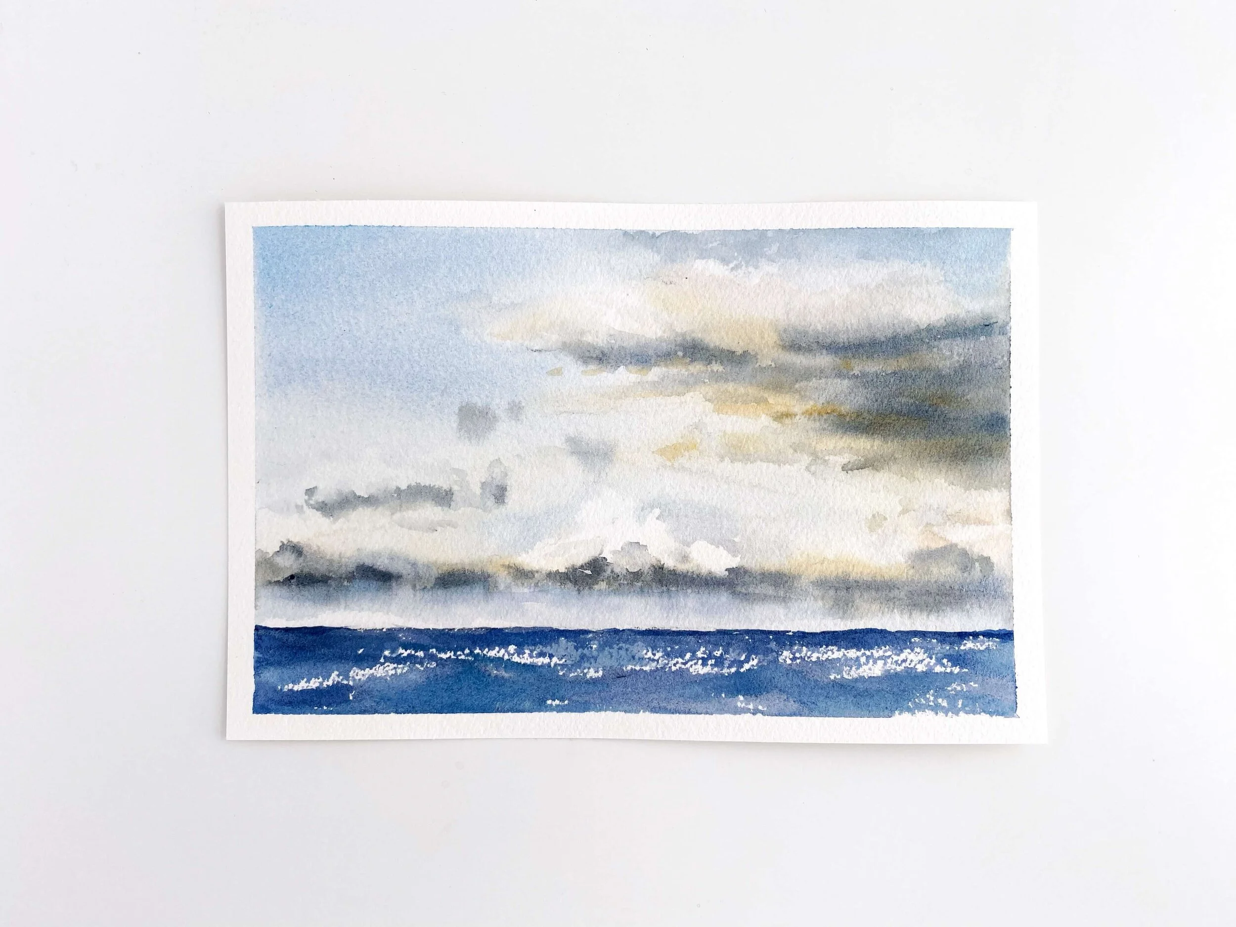Sharing the process behind how I chose to simplify a beach waves photo into a watercolor postcard painting