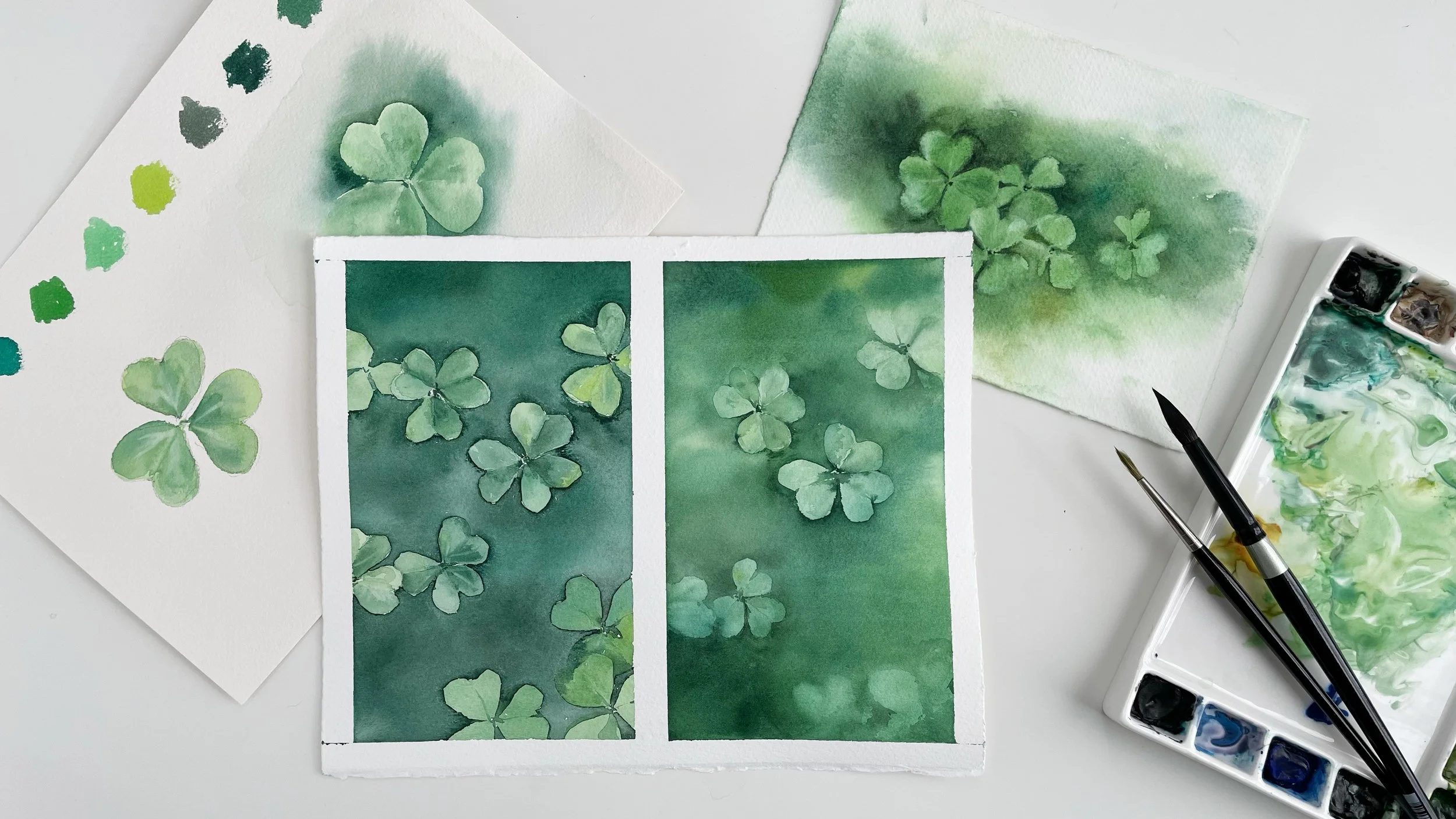 Clovers are more simple to paint when isolated and more complex when grouped together. The goal of the class is to experiment with how to paint a grouping of them in a loose, abstract way.